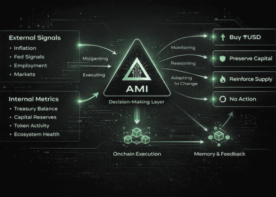 AMI is not a dashboard or an alert system. It is the decision layer of the TurboUSD economy. It reads signals, weighs them against treasury rules and policy constraints, and acts. When conditions don’t justify action, it holds. When they do, it executes onchain. No committee, no delay.