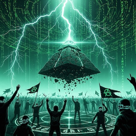 This visual language reaches further into cultural memory. The pyramid with the all-seeing eye, present on every U.S. dollar bill, ties the movement to ideas of hidden power and secret influence, while circles and ritual marks evoke the atmosphere of cults and underground societies. These images do more than decorate. They signal rebellion, strengthen collective identity, and turn the act of belonging into resistance. In this way the Unstable Meta transforms design into proof that what appears stable is already breaking apart.
